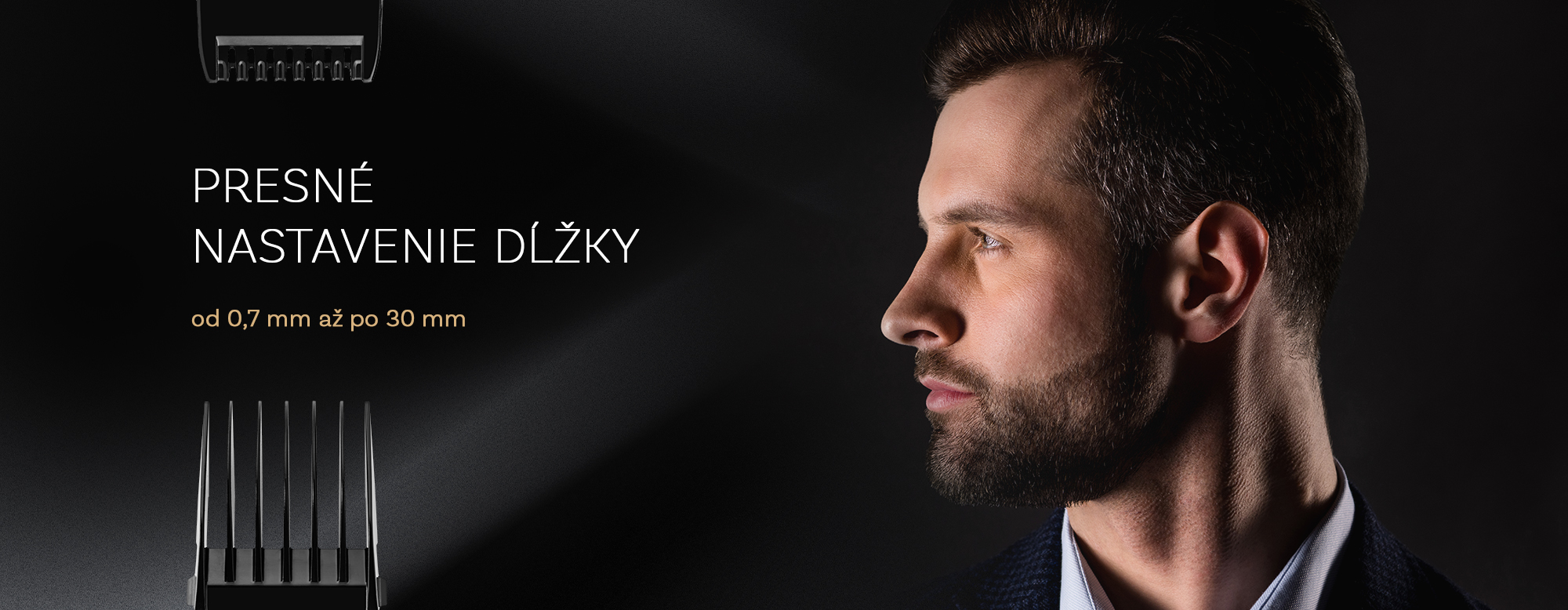 Vyberateľná hlava s titánovo-keramickým ostrím zabezpečuje hladké a presné zastrihnutie vlasov aj fúzov. Bez hrebeňových nadstavcov si nastavíte dĺžku strihu od 0,7 do 2,5 mm. So šiestimi priloženými nadstavcami až do 30 mm si môžete štýl prispôsobiť podľa nálady aj potreby.